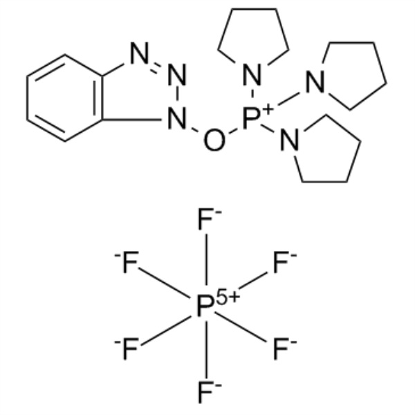 1H-Benzotriazol-1-ilossitripirrolidinofosfonio esafluorofosfato (PyBOP) (CAS: 128625-52-5) è uno dei reagenti di accoppiamento peptidico più convenienti utilizzati nella sintesi peptidica in fase solida senza sottoprodotti cancerogeni. Viene utilizzato anche come sostituto del reagente (benzotriazol-1-ilossi)tris(dimetilammino)fosfonio esafluorofosfato (BOP). Ha una reattività simile al BOP, ma il suo sottoprodotto non è altamente cancerogeno. PyBOP è particolarmente adatto per la sintesi peptidica in fase solida ed evita la racemizzazione. A differenza dei reagenti di accoppiamento a base di uronio, PyBOP non forma sottoprodotti guanidinati se utilizzato in eccesso. Ciò lo rende utile nelle reazioni di condensazione dei frammenti e nelle ciclizzazioni testa-to-coda.