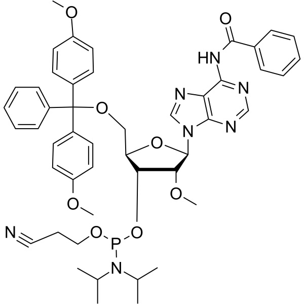 | Sinonimi | DMT-2'-O-Metile-rA(Bz) Fosforamidite; DMT-2′-O-Me-rA(bz) Amidite; 5′-ODMT-2’-OMe N-Bz Adenosina amidite; Ac-dA Fosforamidite; N6-Benzoile-5'-O-DMT-2'-O-Metiladenosina 3'-CE Fosforamidite; N6-Benzoile-5'-O-DMT-2'-O-Metile-D-Adenosina 3'-CE Fosforamidite; N-Benzoil-5'-O-(4,4'-Dimetossitritil)-2'-O-Metiladenosina-3'-(2-Cianoetil-N,N-Diisopropil)fosforamidito; 5'-O-DMT-2'-OMe-Benzoile-Adenosina-CE Fosforamidite; N-Benzoil-5′-O-[bis(4-metossifenil)fenilmetil]-2′-O-Metil-Adenosina; 3′-[2-Cianoetil N,N-bis(1-Metiletil)fosforamide] |