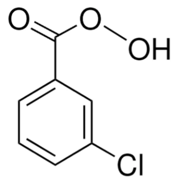 3-L'acido cloroperossibenzoico (mCPBA) (CAS: 937-14-4) è un acido perossicarbossilico. È ampiamente utilizzato come ossidante nella sintesi organica. L'mCPBA è spesso preferito ad altri perossiacidi per la sua relativa facilità di manipolazione.[1] mCPBA è un forte agente ossidante che può provocare un incendio a contatto con materiale infiammabile. L'mCPBA può essere preparato facendo reagire il m-clorobenzoil cloruro con una soluzione basica di perossido di idrogeno, seguita da acidificazione. È ampiamente utilizzato nella reazione di ciclizzazione, nella reazione Baeyer-Villiger, nella reazione N-ossidazione e nella reazione S-ossidazione. Può essere utilizzato come ossidante per la medicina sintetica, pesticidi e altri prodotti della chimica fine e talvolta come agente sbiancante. L'mCPBA è spesso preferito ad altri perossiacidi per la sua relativa facilità di manipolazione.