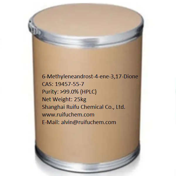 Shanghai Ruifu Chemical Co., Ltd. è il principale produttore e fornitore di 6-Metileneandrost-4-ene-3,17-Dione (1,2-Diidro Exemestane) (CAS: 19457-55-7) con l'intermedio Exemestane di alta qualità (CAS: 107868-30-4). Siamo in grado di fornire COA, consegna in tutto il mondo, disponibilità di piccole quantità e di grandi quantità. Se sei interessato al 6-Metileneandrost-4-ene-3,17-Dione, Si prega di contattare: alvin@ruifuchem.com