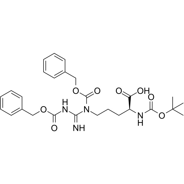 Nα-Boc-Nδ,Nω-di-Z-L-Arginina (Boc-Arg(Z)2-OH) (CAS: 51219-19-3), Boc-amminoacidi, utilizzati nella sintesi peptidica, tipo di reazione: sintesi peptidica in fase solida-Boc. Utilizzato come intermedio di sintesi organica, intermedio farmaceutico, reagente biochimico o reagente chimico.