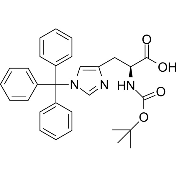Boc-His(Trt)-OH (CAS: 32926-43-5) è un derivato dell'istidina. È un derivato dell'istidina protetto solo per la fase critica di accoppiamento. Dopo aver accoppiato il Boc- e i gruppi Trt- vengono scissi simultaneamente dal TFA.