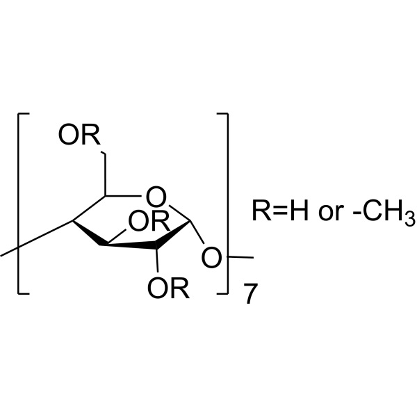 Il metil-β-ciclodestrina è una forma metilata in modo casuale dell'oligosaccaride ciclico β-ciclodestrina. Metil-β-ciclodestrina contiene sette unità D-(+)-glucopiranosio che contengono idrogeno o gruppi metilici randomizzati. La metil-β-ciclodestrina è stata utilizzata per migliorare la solubilità in acqua di vari composti e per estrarre il colesterolo dalle membrane lipidiche.