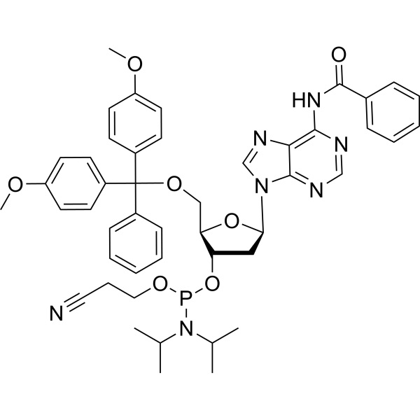 | Sinonimi | DMT-dA(bz) Amidite; dA(N-Bz) Fosforamidite; DA-CE Fosforamidite; DMT-dA(Bz)-CE-Fosforamidite; 5'-O-DMT-N6-Benzoil-2'-Deossi adenosina fosforamidite; 5'-O-(4,4'-Dimetossitritil)-N6-Benzoil-2'-Deossiadenosina-3'-(2-Cianoetil-N,N-Diisopropil)fosforammidito; N-Benzoil-5'-O-(4,4'-Dimetossitritil)-2'-Deossiadenosina-3'-(2-Cianoetil-N,N-Diisopropil)fosforamide; N-Benzoil-5'-O-[bis(4-Metossifenil)(fenil)metil]-3'-O-[(2-Cianoetossi)(diisopropilammino)fosfino]-2'-Deossiadenosina |