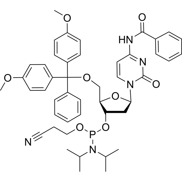 | Sinonimi | 5'-O-DMT-N4-Benzoil-2'-Deossicitidina 3'-CE Fosforamidite; dC (N-Bz) Fosforamidite; dC (Bz) CE-Fosforamidite; DNAC-fosforamidite; N4-Benzoile-2'-Deossi-5'-O-DMT-Citidina 3'-CE Fosforamidite; N-Benzoile-5'-O-(4,4'-Dimetossitritil)-2'-Deossicitidina-3'-(2-Cianoetil-N,N-Diisopropil)fosforammidito; N-Benzoil-5'-O-[bis(4-Metossifenil)(fenil)metil]-3'-O-[(2-Cianoetossi)(diisopropilammino)fosfino]-2'-Deossicitidina |