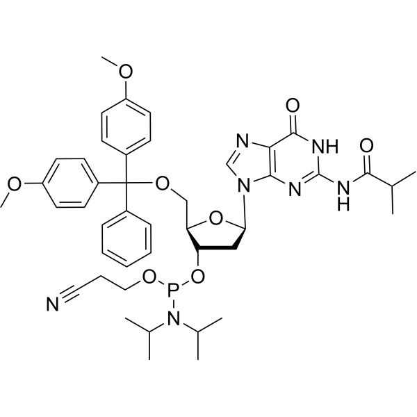 | Sinonimi | DMT-dG(ib) Farmadite; dG(N-ibu) Fosforamidite; Guanosina-BCE-Fosforamidite; N2-Isobutirril-5'-O-(4,4'-Dimetossitritil)-2'-Deossiguanosina-3'-(2-Cianoetil-N,N-Diisopropil)fosforammidito; 5'-O-[Bis(4-metossifenil)(fenil)metil]-3'-O-[(2-cianoetossi)(diisopropilammino)fosfino]-2'-Deossi-N-isobutirrilguanosina; N-(2-Metile-1-Ossopropil)-5′-O-[bis(4-Metossifenil)fenilmetil]-2′-Deossiguanosina; 3′-[2-Cianoetil N,N-bis(1-Metiletil)fosforamide] |