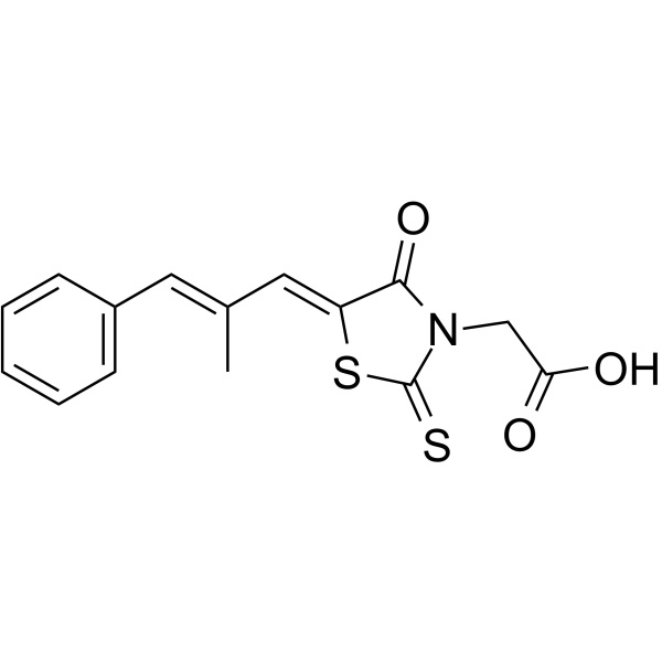 | Sinonimi | Epalrest; ONO-2235; Eabeth; Kinedak; sorbistato; (5Z)-5-[(2E)-2-Metile-3-fenil-2-propen-1-ilidene]-4-osso-2-tiosso-3-Acido tiazolidineacetico; 2-[(5Z)-5-[(E)-3-fenile-2-metilprop-2-enilidene]- acido 4-osso-2-tiosso-3-tiazolidinil]acetico; (E,E)-2-[5-(2-Metile-3-fenil-prop-2-enilidene)-4-osso-2-sulfanilidene-tiazolidina-3-il]acido acetico |