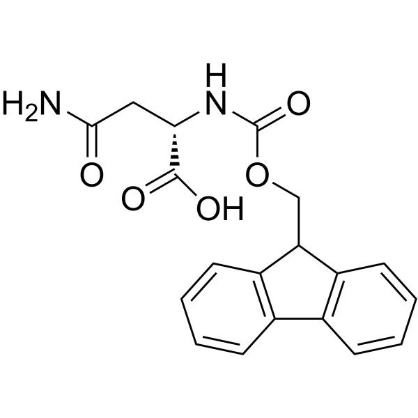 Fmoc-L-Asparagina (Fmoc-Asn-OH) (CAS: 71989-16-7) è una forma N-Fmoc-protetta di L-Asparagina. Fmoc-amminoacidi, utilizzati nella sintesi peptidica, utilizzati come intermedio di sintesi organica, intermedio farmaceutico, reagente biochimico o reagente chimico.