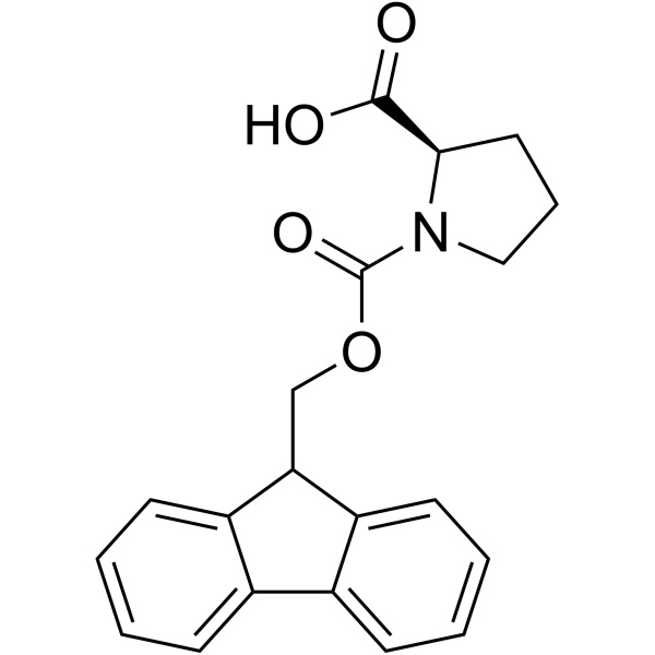 Fmoc-D-Prolina (Fmoc-D-Pro-OH) (CAS: 101555-62-8), Fmoc-amminoacidi, utilizzati nella sintesi peptidica, utilizzati come intermedio di sintesi organica, intermedio farmaceutico, reagente biochimico o reagente chimico.