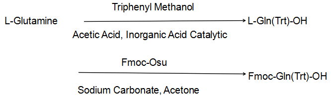Fmoc-Gln(Trt)-OH nella sintesi peptidica impedisce la possibilità che la catena laterale dell'ammide subisca reazioni collaterali di disidratazione durante l'attivazione, specialmente con i reagenti carbodiimmide. Fmoc-Gln(Trt)-OH ha anche proprietà di solubilità migliori rispetto a Fmoc-Gln-OH. Fmoc-Gln(Trt)-OH si dissolve facilmente in tutti i reagenti standard per la sintesi dei peptidi, mentre Fmoc-Gln-OH è molto meno solubile in dimetilformammide (DMF).