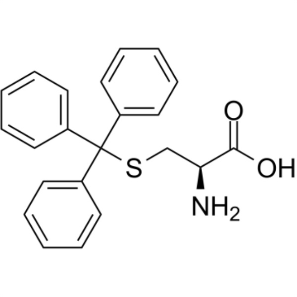 S-Tritil-L-Cisteina (H-Cys(Trt)-OH) (CAS: 2799-07-7) è una cisteina protetta per la sintesi peptidica. S-Tritil-L-Cisteina, un amminoacido non-naturale, contenente zolfo-è comunemente usato come reagente nella sintesi peptidica in fase di soluzione (SPPS). Viene utilizzato anche come agente legante metallo per sintetizzare coniugati di peptidi ferrocenoil sostituiti utilizzando il reagente di accoppiamento peptidico HBTU per la soluzione di applicazioni di rilevamento cationi tramite interazioni peptide - metallo.