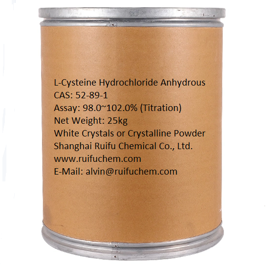 Shanghai Ruifu Chemical Co., Ltd. è il principale produttore e fornitore di L-cisteina cloridrato anidro (CAS: 52-89-1) di alta qualità, con una capacità produttiva di 3000 tonnellate all'anno. Ruifu Chemical fornisce una serie di derivati degli amminoacidi. In qualità di produttore e fornitore esperto di L-cisteina cloridrato anidro, forniamo ed esportiamo L-cisteina cloridrato anidro da quasi 10 anni, ti assicuriamo di acquistare da noi. Siamo in grado di fornire COA, consegna in tutto il mondo, disponibilità di piccole quantità e di grandi quantità. Se sei interessato alla L-cisteina cloridrato anidra, Si prega di contattare: alvin@ruifuchem.com