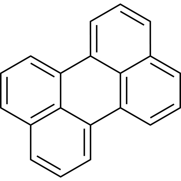 Perilene (CAS: 198-55-0) è un orto- e arene policiclico peri-fuso comprendente cinque anelli benzenici ovvero antracene in cui i lati d,e e k,l sono fusi in anelli benzenici.